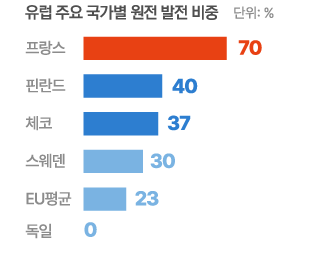 유럽은 한때 탈원전 정책을 추진했지만, 러시아 가스 의존과 전기요금 상승 등 에너지 안보 문제가 드러나면서 원자력 발전 재평가 시작. |